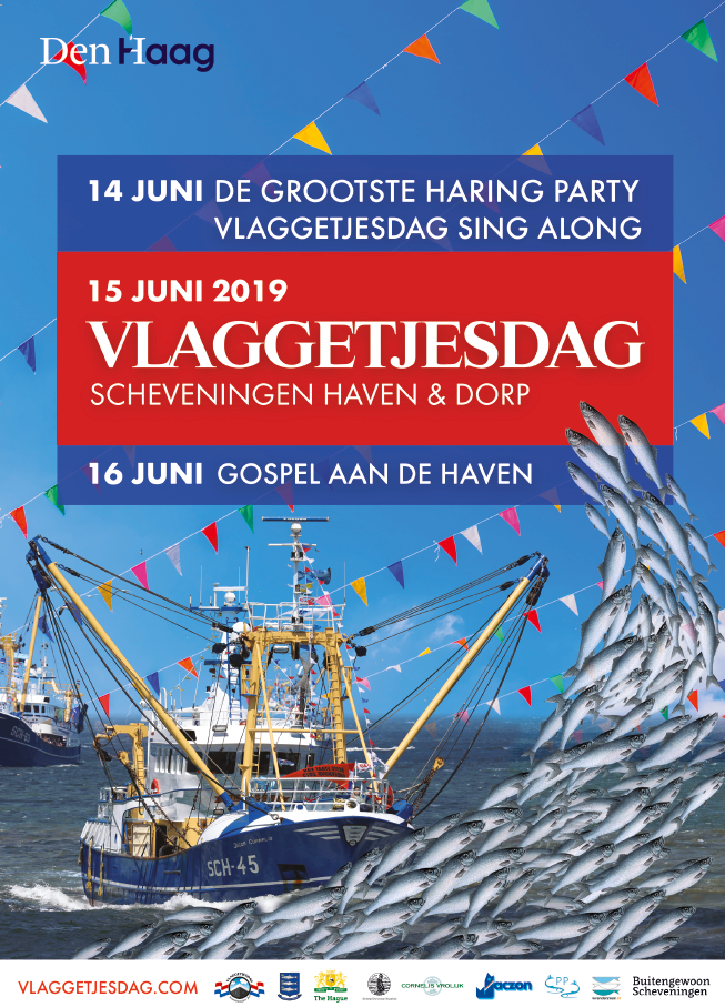 In 1950 is het zover. Op de vergadering van de Redersvereniging Scheveningen van 3 mei 1950 meldt de voorzitter dat er een ‘Comité Vlaggetjesdag’ is opgericht. In dit Comité Vlaggetjesdag hadden zitting genomen de heren J. v. d. Toorn en D. A. den Dulk voor de rederijen, de heren P. Knoester en C. Vrolijk voor de groothandel, de heren Bronsveld en Ellinkhuizen voor de viswinkeliers en de heer Jac. Vooys voor de visgroothandel. Voorts de heer Den Daas voor de Maatschappij Zeebad, de heer Rensen voor de Gemeente Den Haag en de heer H. van Donk voor de Stichting Scheveningen. Het secretariaat werd waargenomen door de heer Roeleveld. De eerste voorstellen van het Comité waren dat op zaterdagmorgen 27 mei de vlaggen moesten worden gehesen. Op de zaterdagmiddag zou een bedrijfsoptocht worden gehouden begeleid door muziek. ‘s Avonds waren de loggers verlicht en ter afsluiting werd door de Maatschappij Zeebad een vuurwerk aangeboden. Op zondag werd niets gedaan, maar de loggers bleven gepavoiseerd. Op maandag 29 mei zou de vlootrevue worden gehouden. Allereerst werd de wimpel voor de best verzorgde haring in 1949 aan boord van de SCH 262 gehesen. Het hospitaalkerkschip ‘De Hoop’ zou eveneens de vlootrevue meemaken. Een subcommissie bestaande uit de heren J. J. v.d. Toorn, Eschauzier, Roeleveld en twee schippers zouden beoordelen of het weer gunstig was. Indien dit niet het geval mocht zijn dan zou men overwegen, een tiental schepen met zware motoren zonder passagiers de vlootrevue te laten uitvoeren.